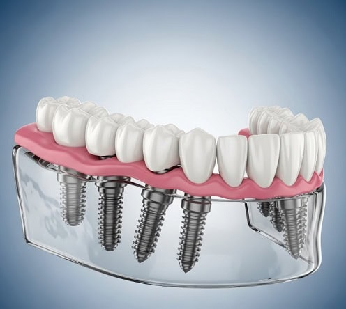 תהליך שבו מוחדרים שתלים דנטליים ללסת העליונה או התחתונה, ועליהם מורכבת מערכת שיניים קבועה.